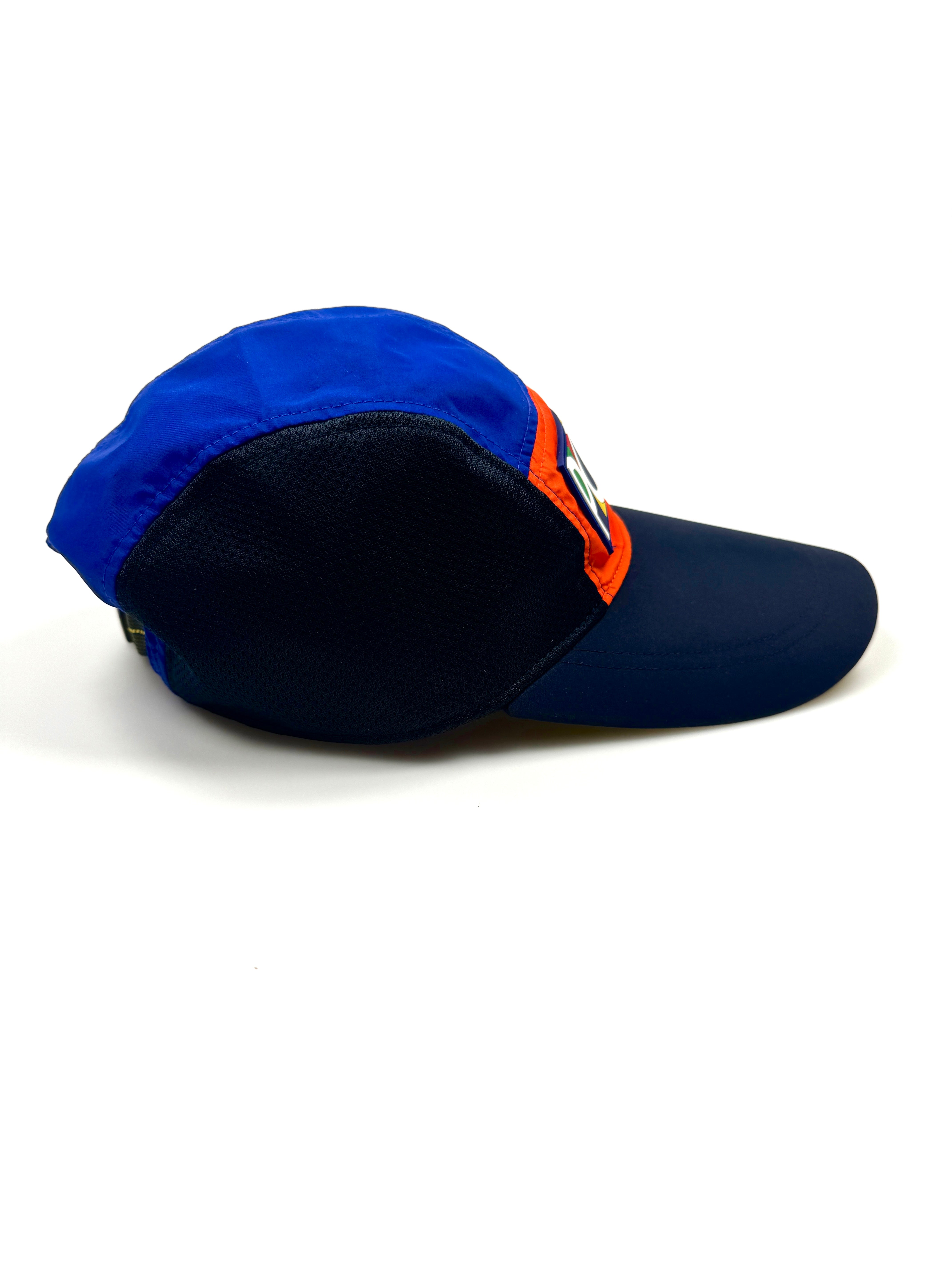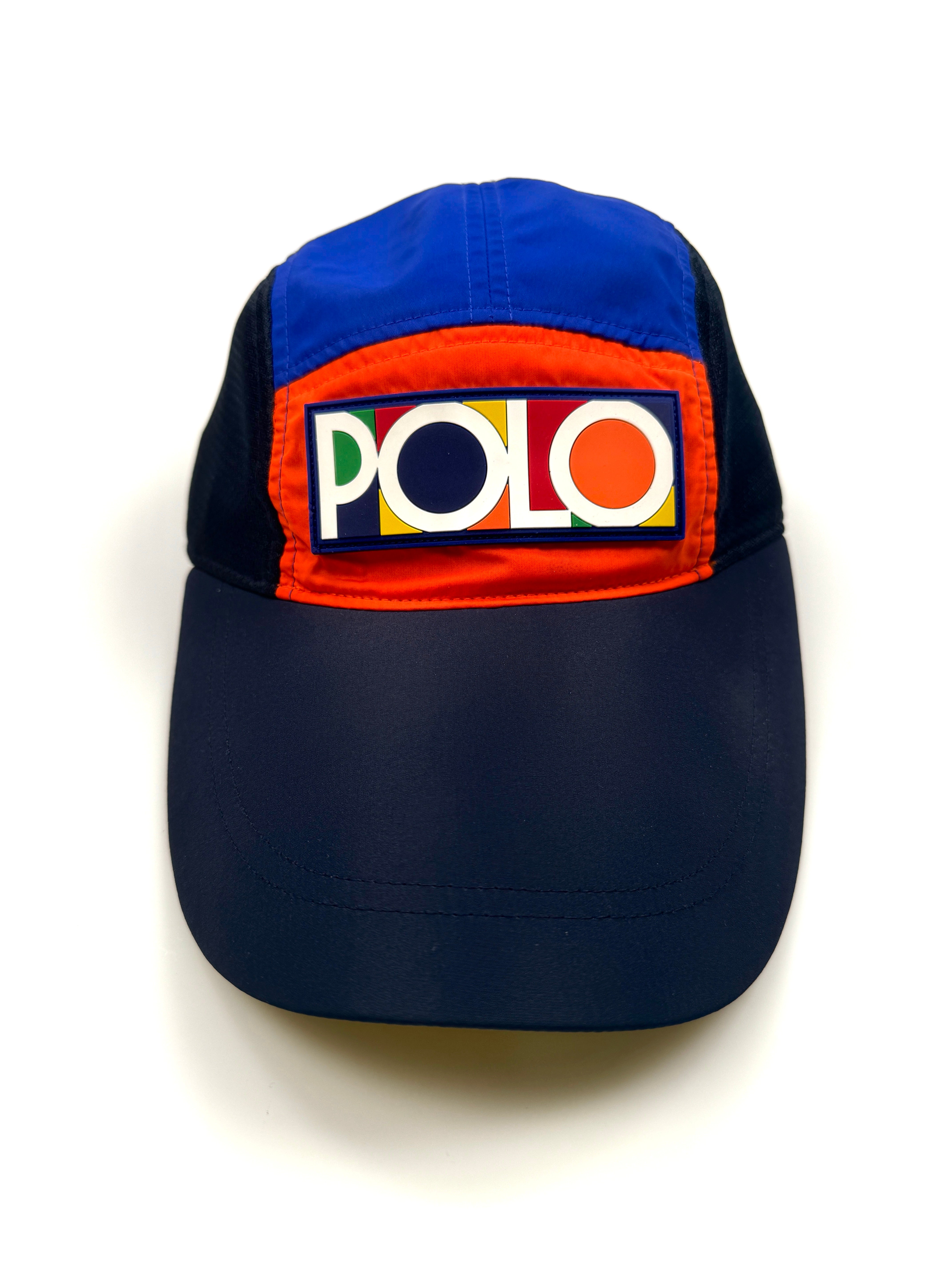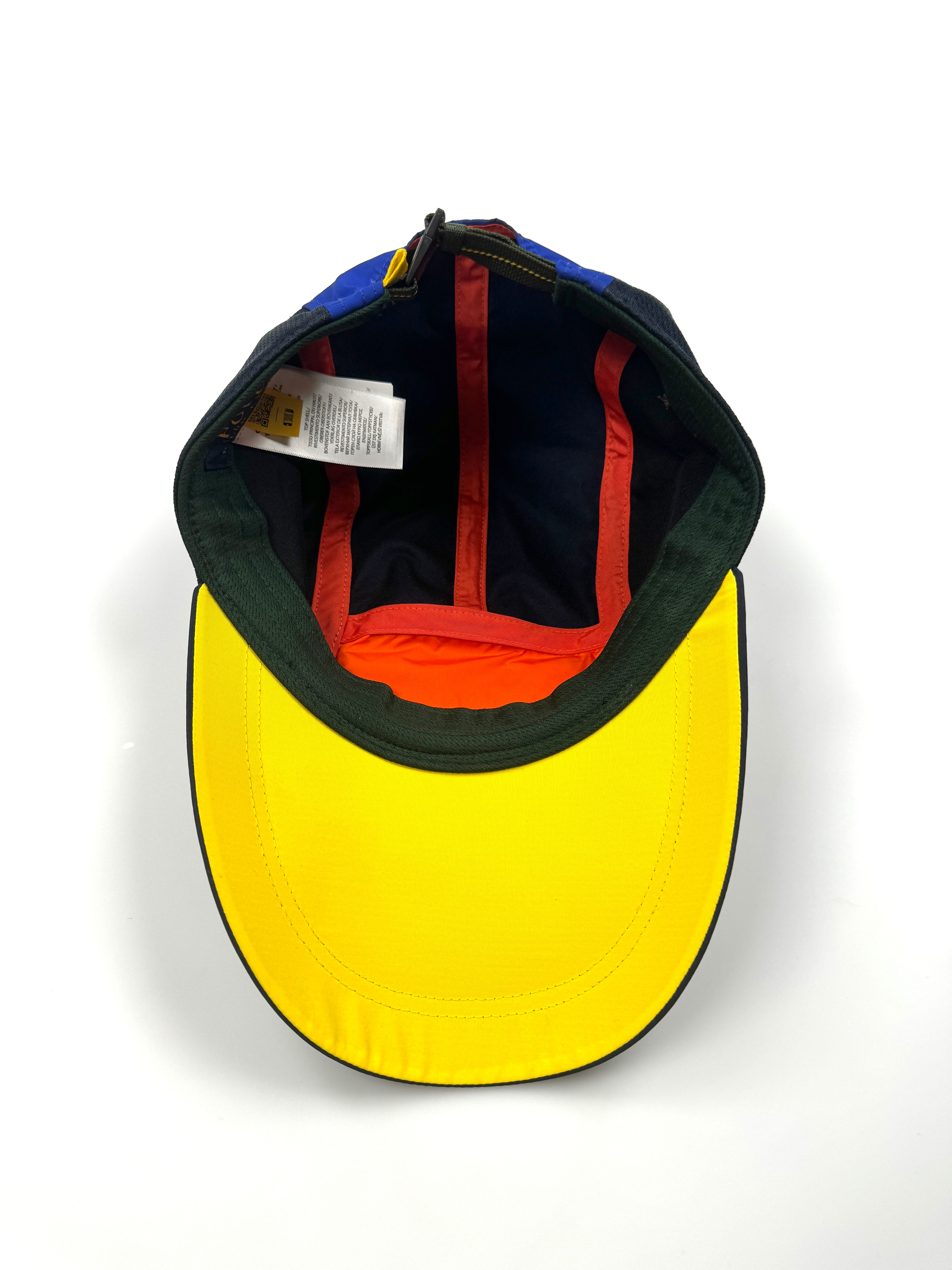 Constructed from recycled nylon with mesh side panels, this five-panel cap features a color-blocked design and a multicolored version of Polo's iconic logo.