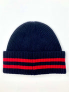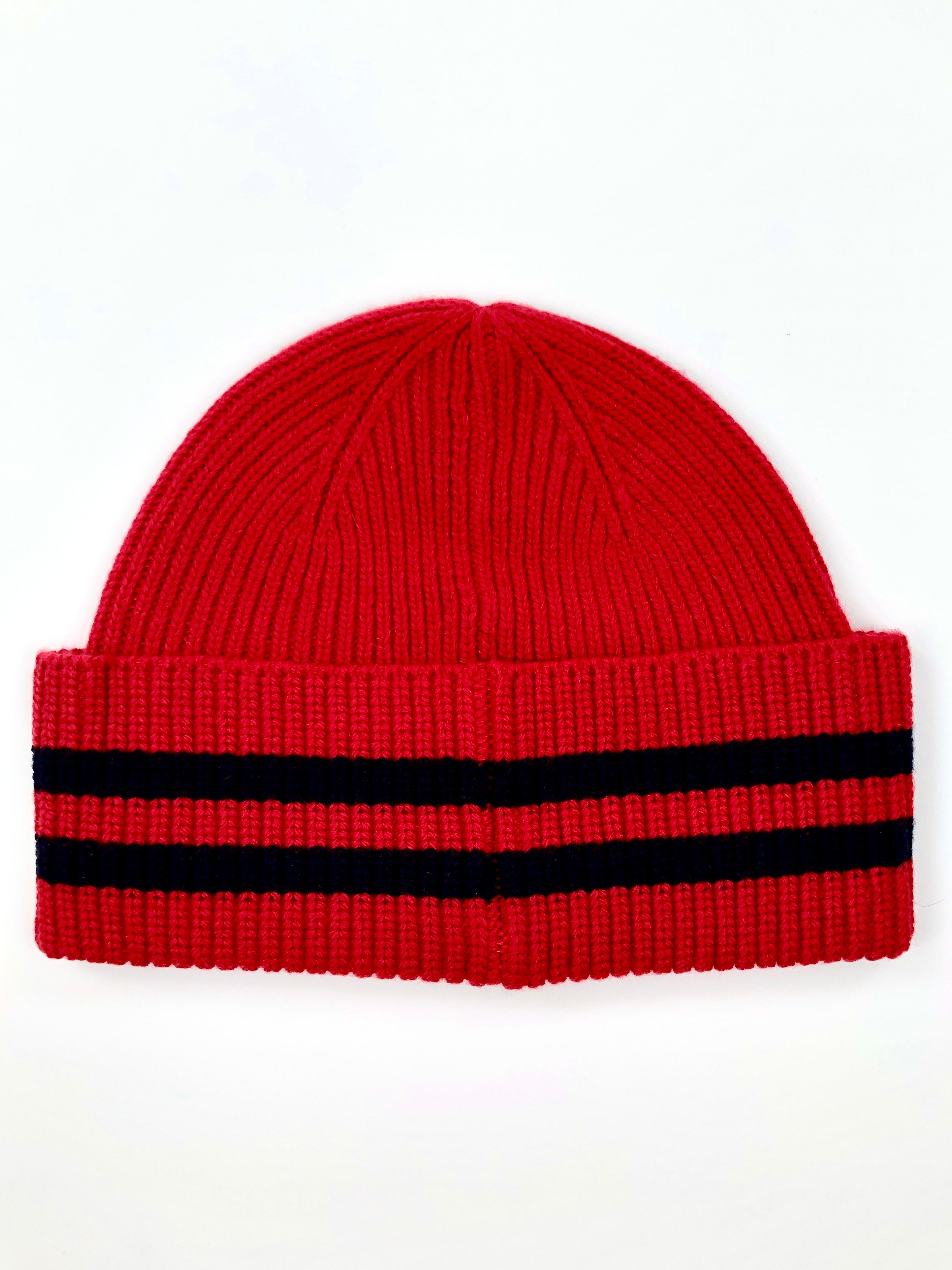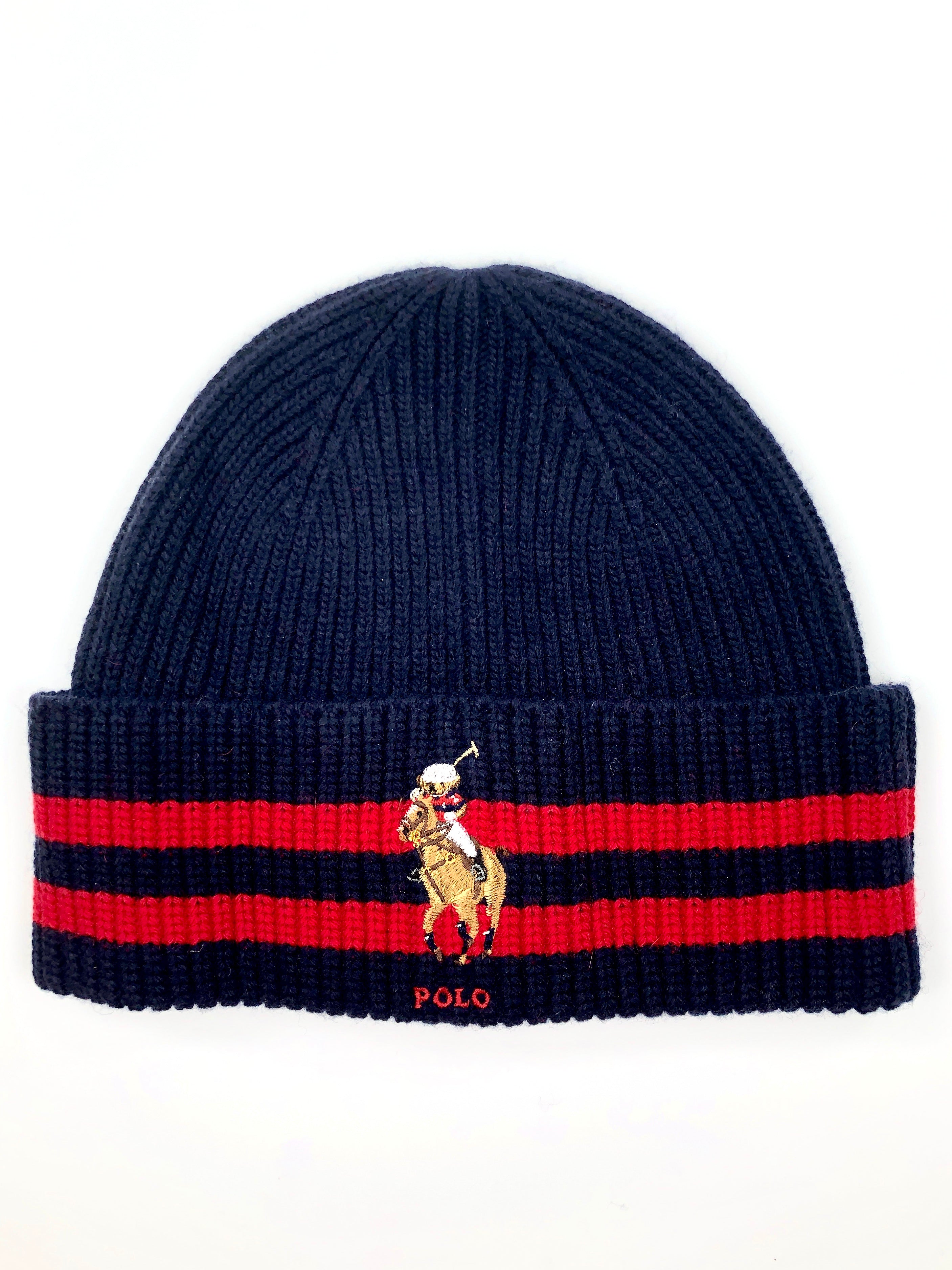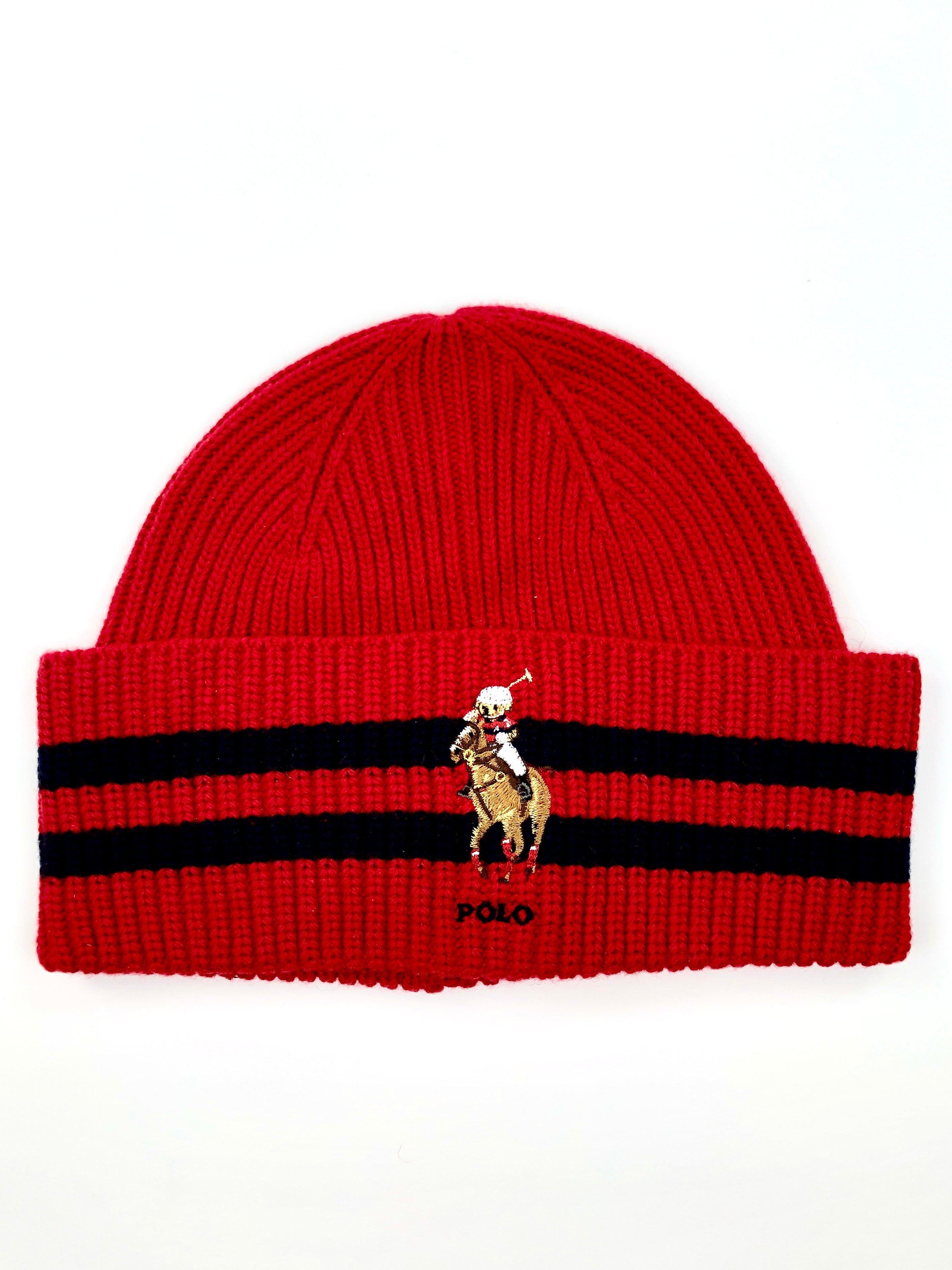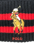The world's best-dressed bear plays polo with Ralph Lauren's signature Big Pony on this striped-cuff beanie, made with extra-fine merino wool.
