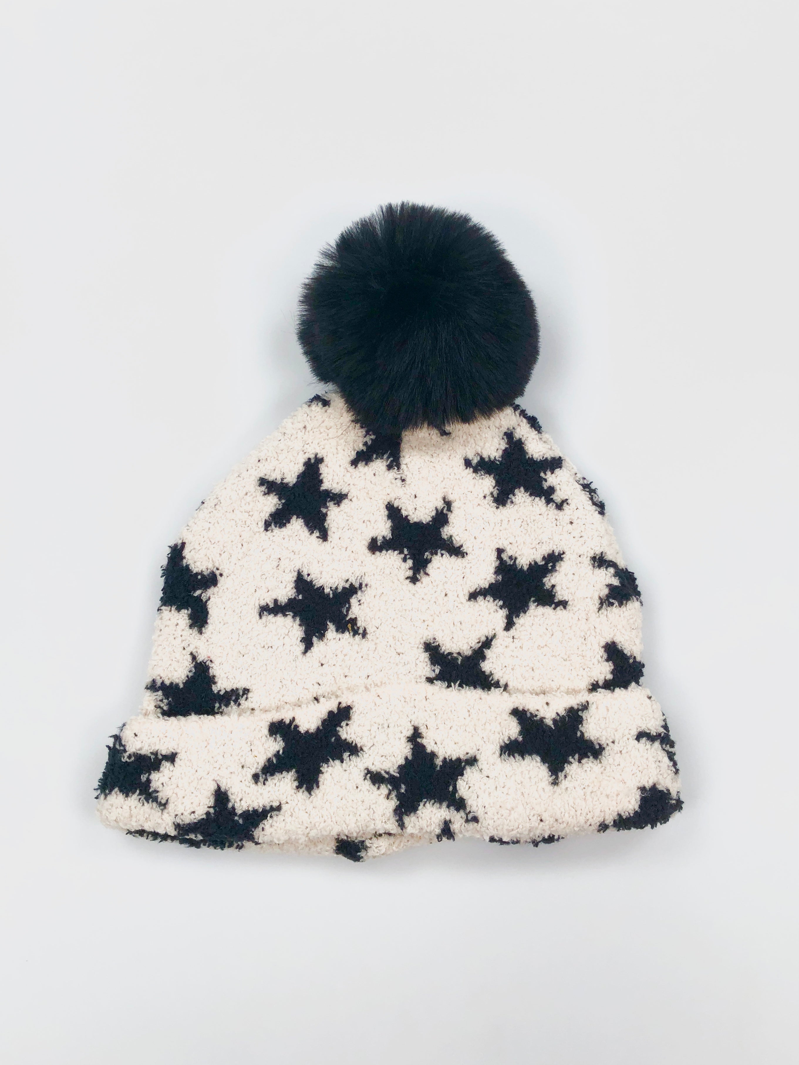 - Faux fur pom pom at top.