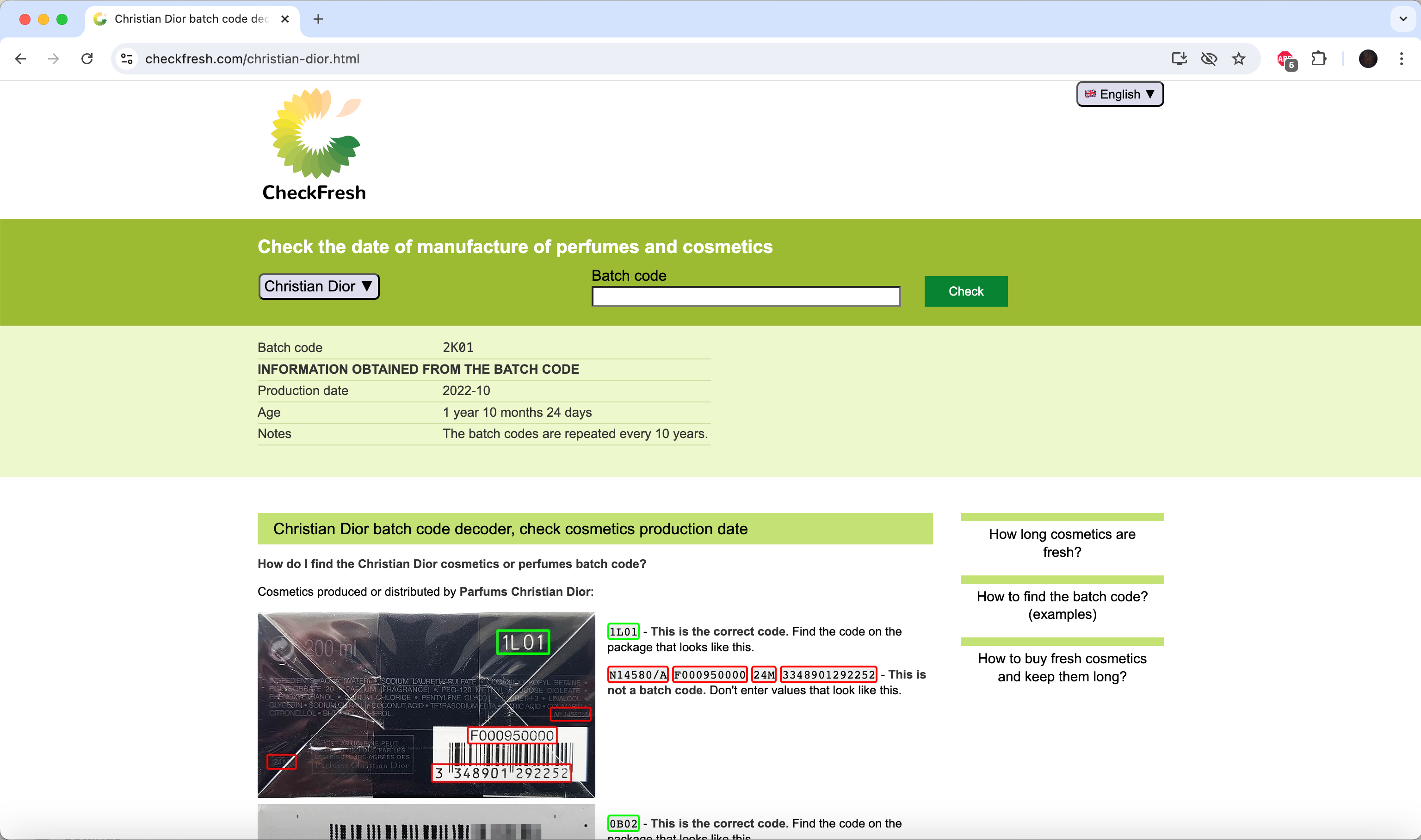This fragrance was made in October 2022. The Batch Code is 2K01