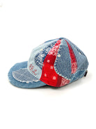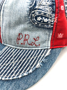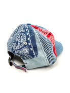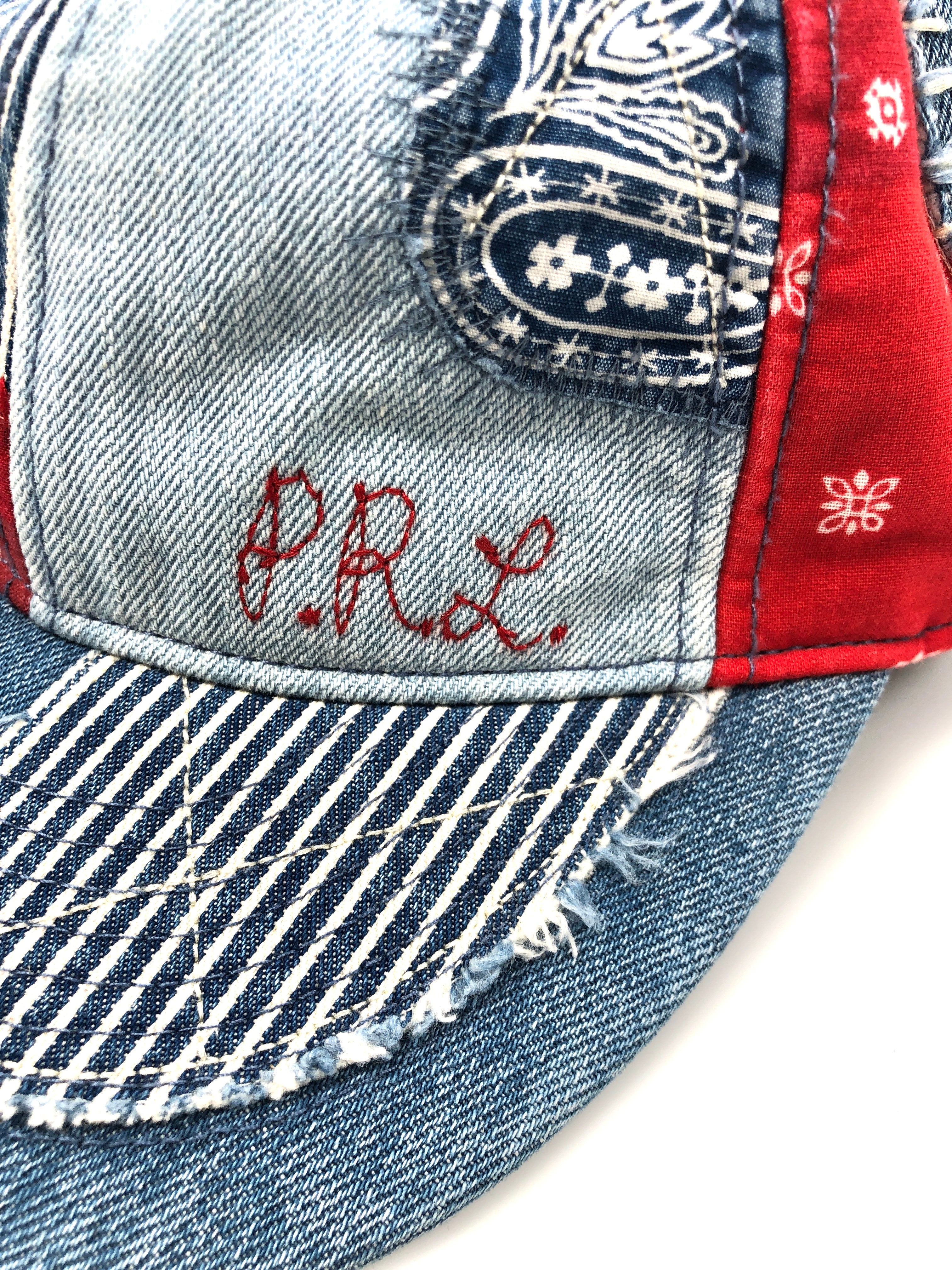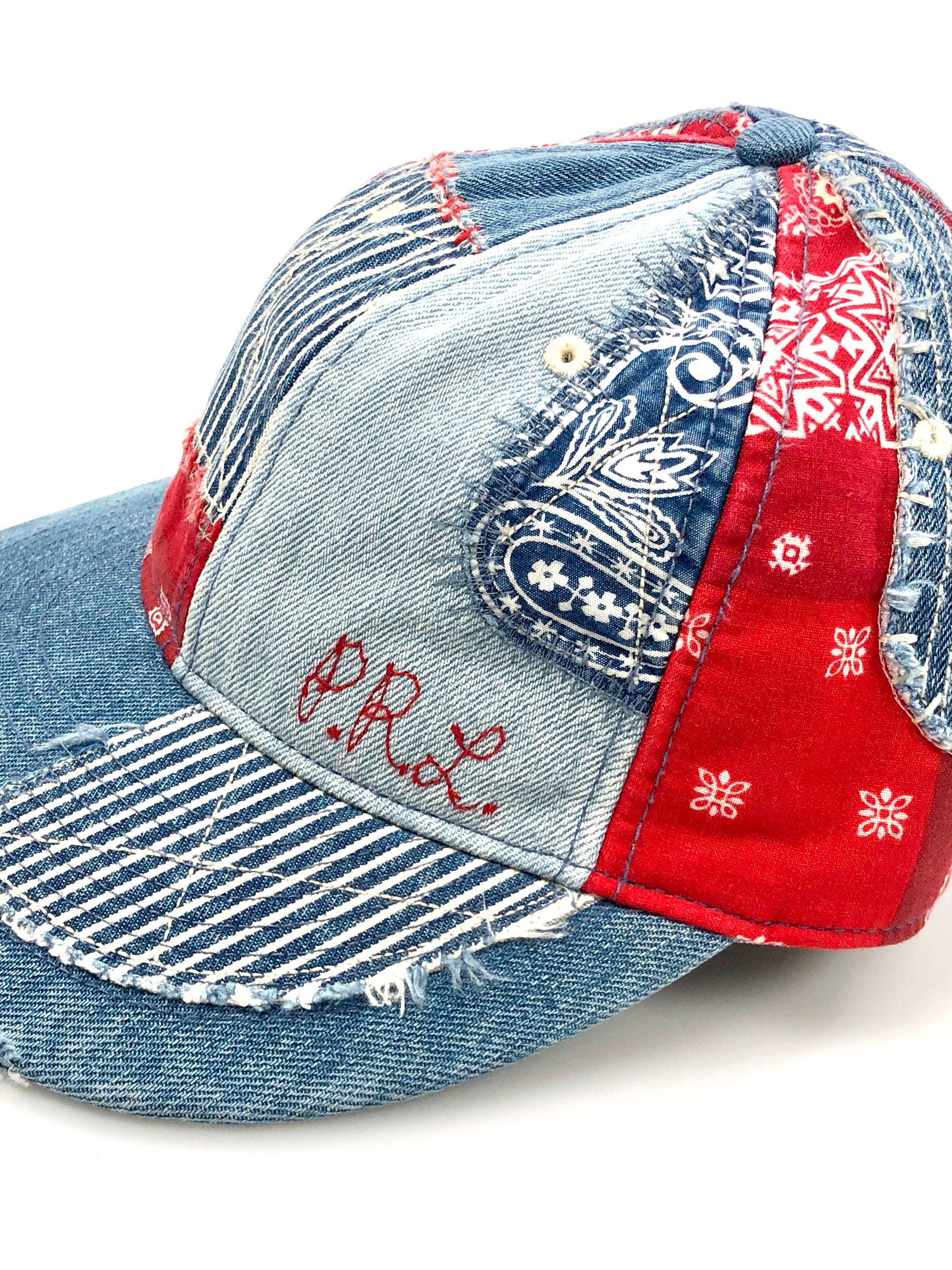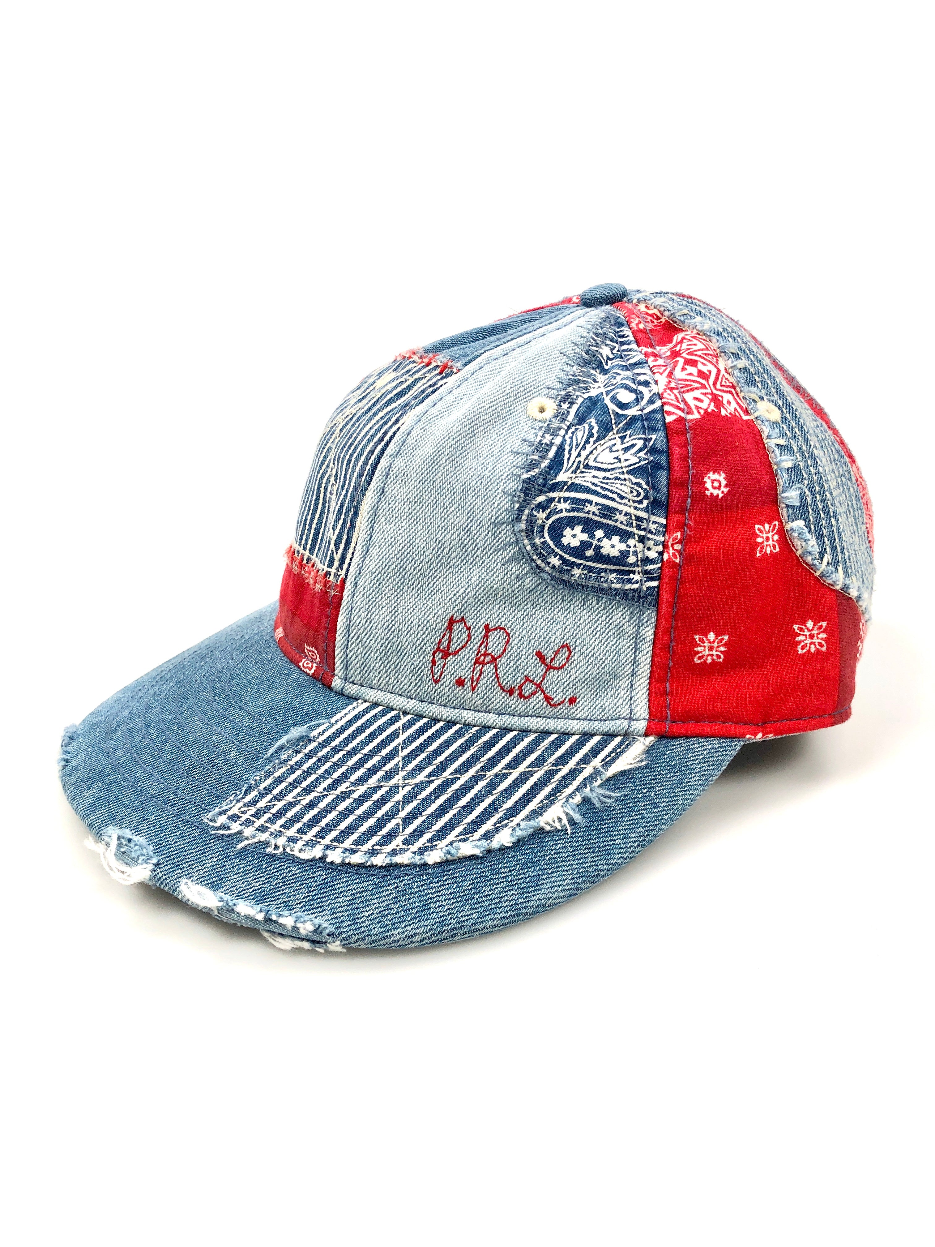 Featuring a patchwork design composed of denim and bandana-print fabrics, this ball cap is distressed on the bill for an authentic timeworn look. Ralph Lauren's signature chain-stitched logo embroidery accents the front.