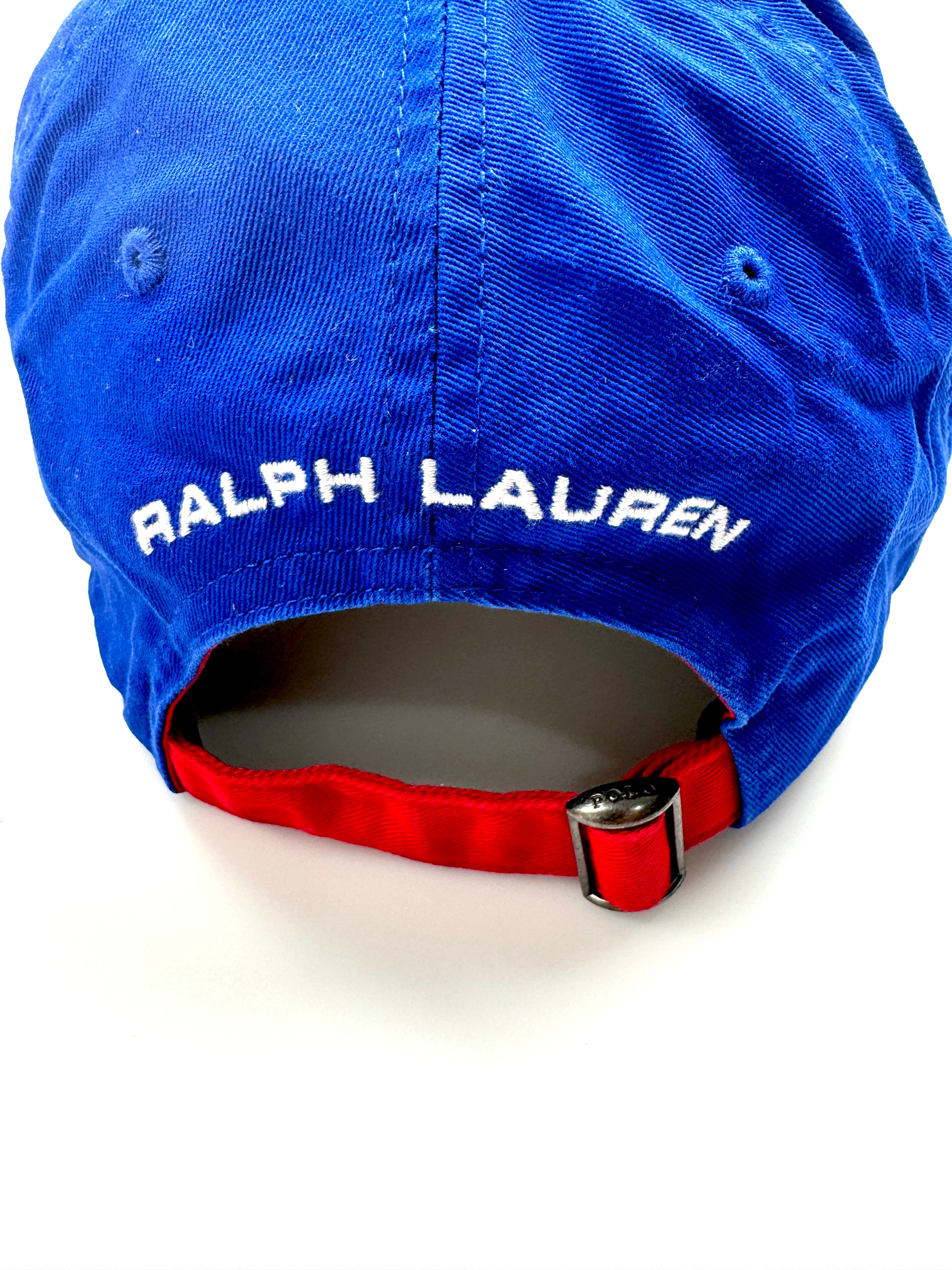 - "Ralph Lauren" embroidery and a slider buckle at the back.