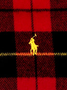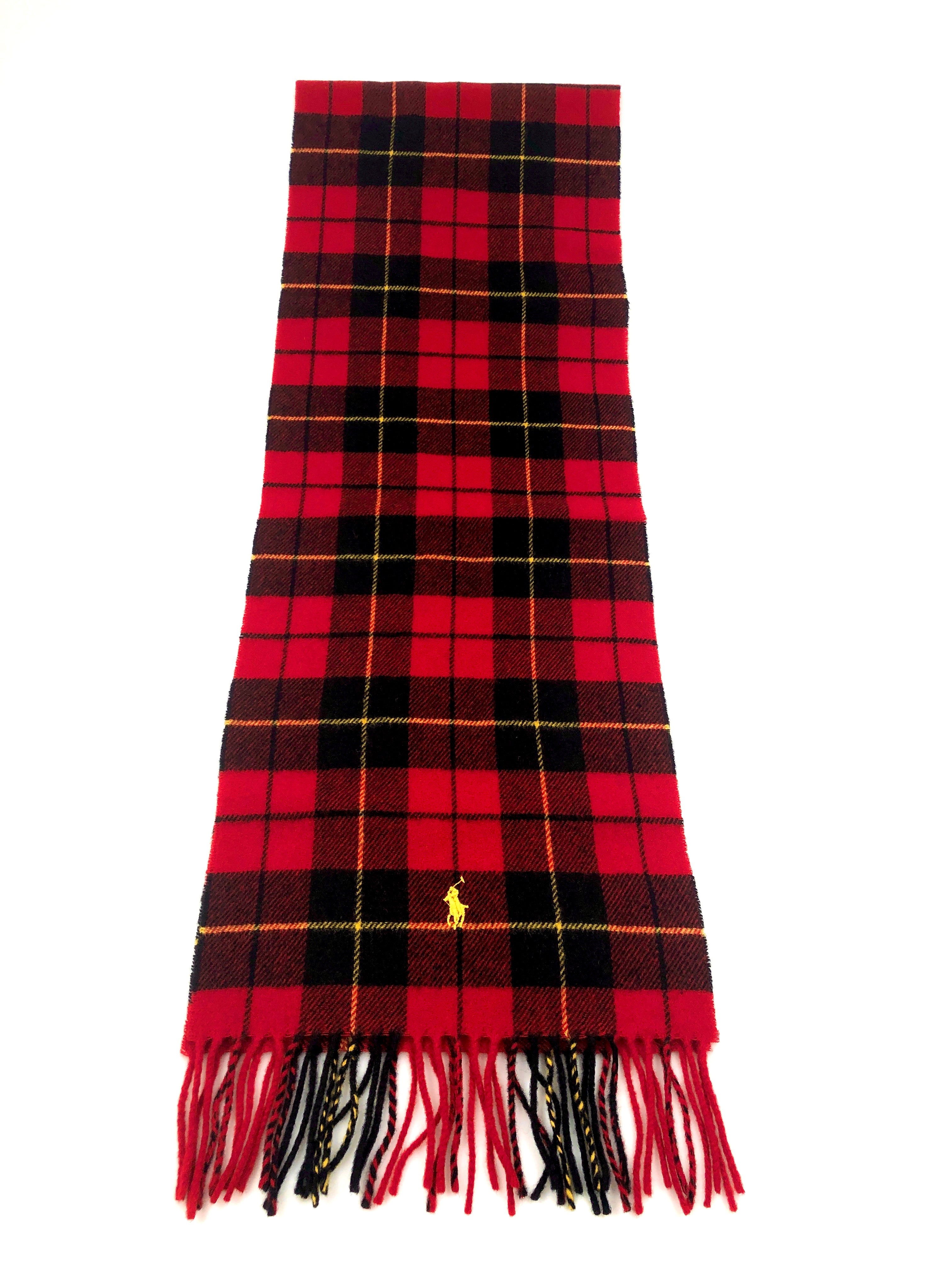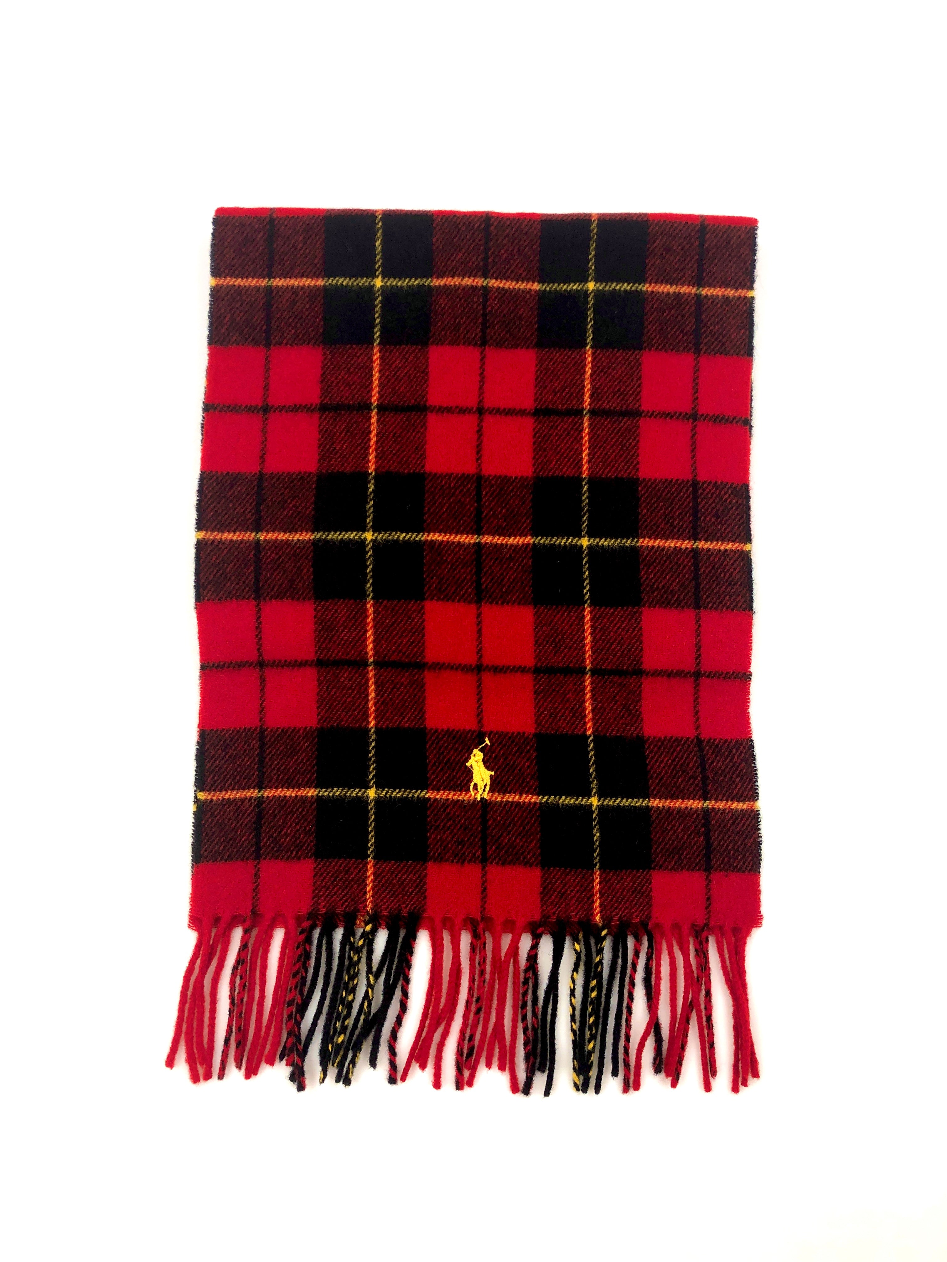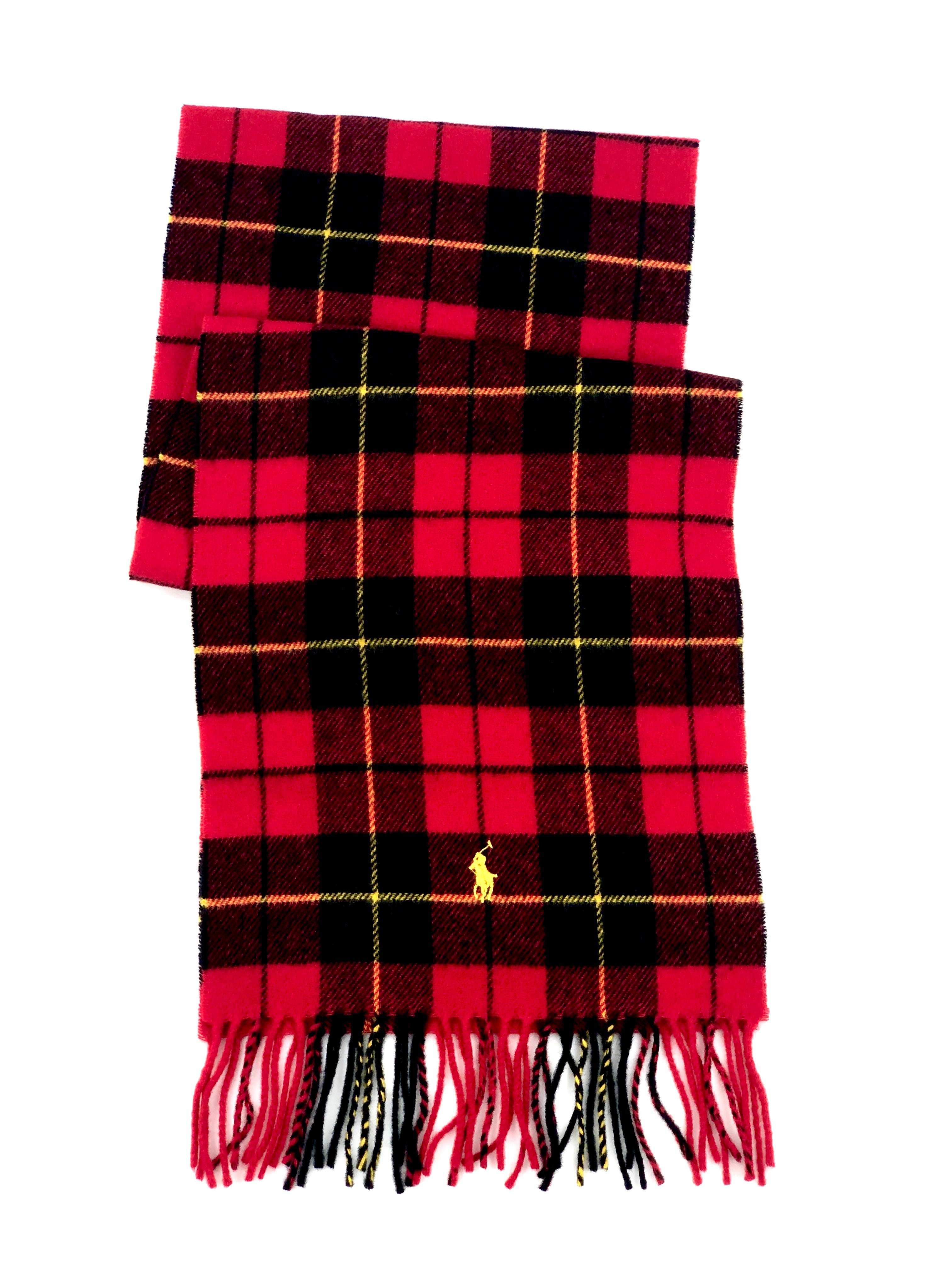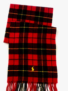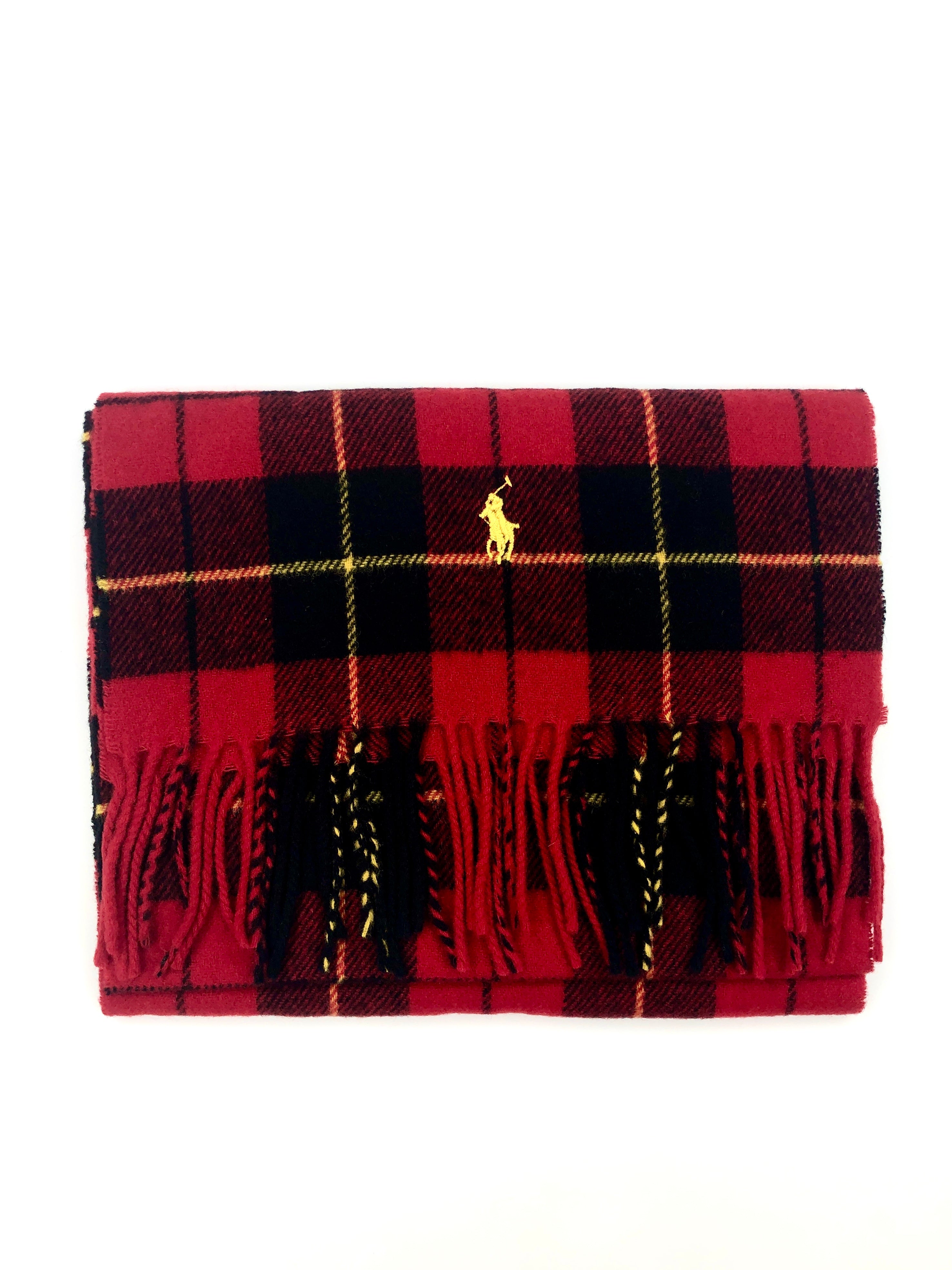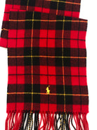 The Polo Ralph Lauren Men's Classic Plaid Scarf features Polo's signature plaid and an embroidered logo Polo player above a twisted-fringe hem.