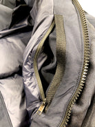 • Leather trim at the cuffs and chest pockets. Drawstring waist. Fully lined and filled.