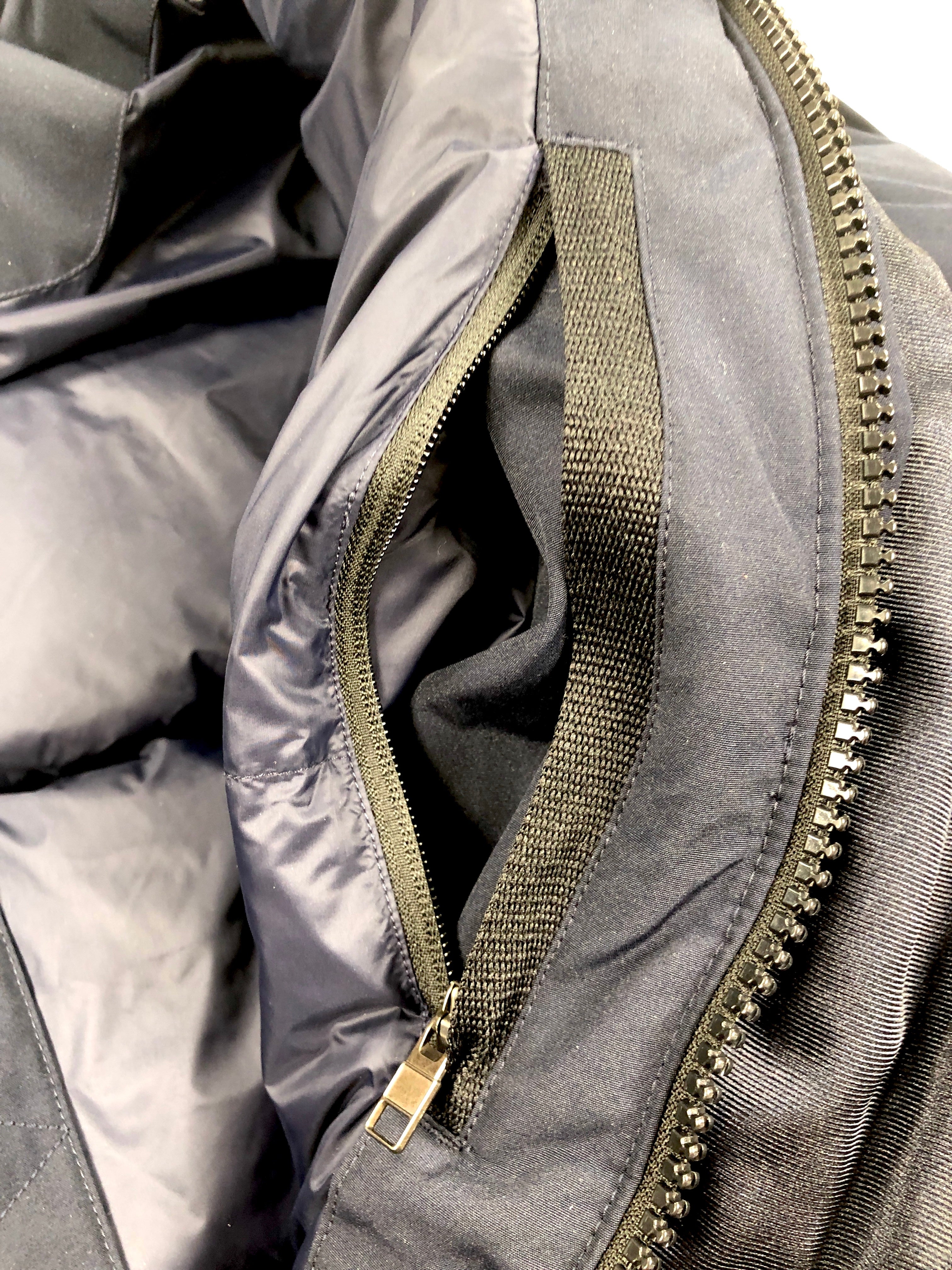 • Shell: polyester, cotton. Lining: nylon. Fill: duck down, duck feathers. Cuffs: cotton, nylon, polyester, elastodiene, elastane.