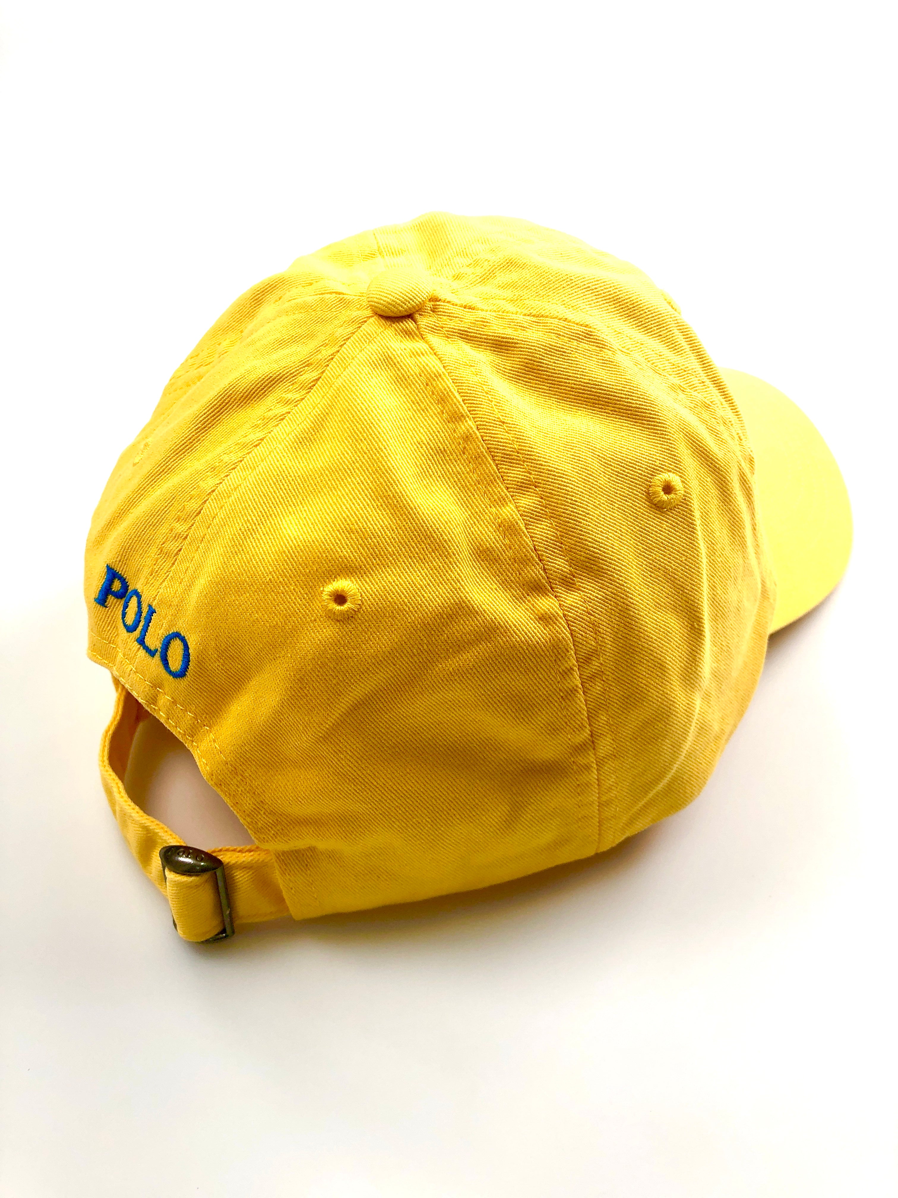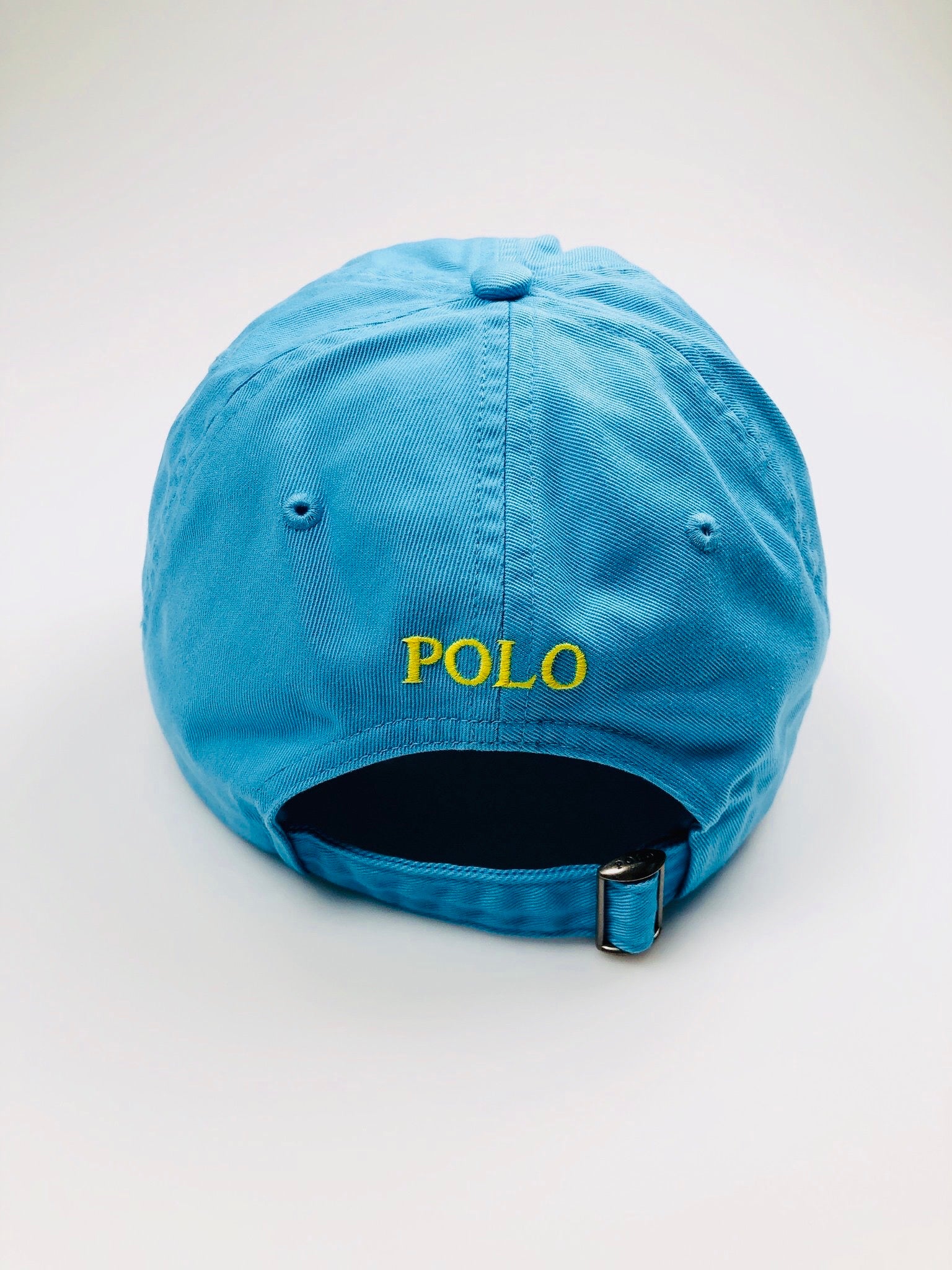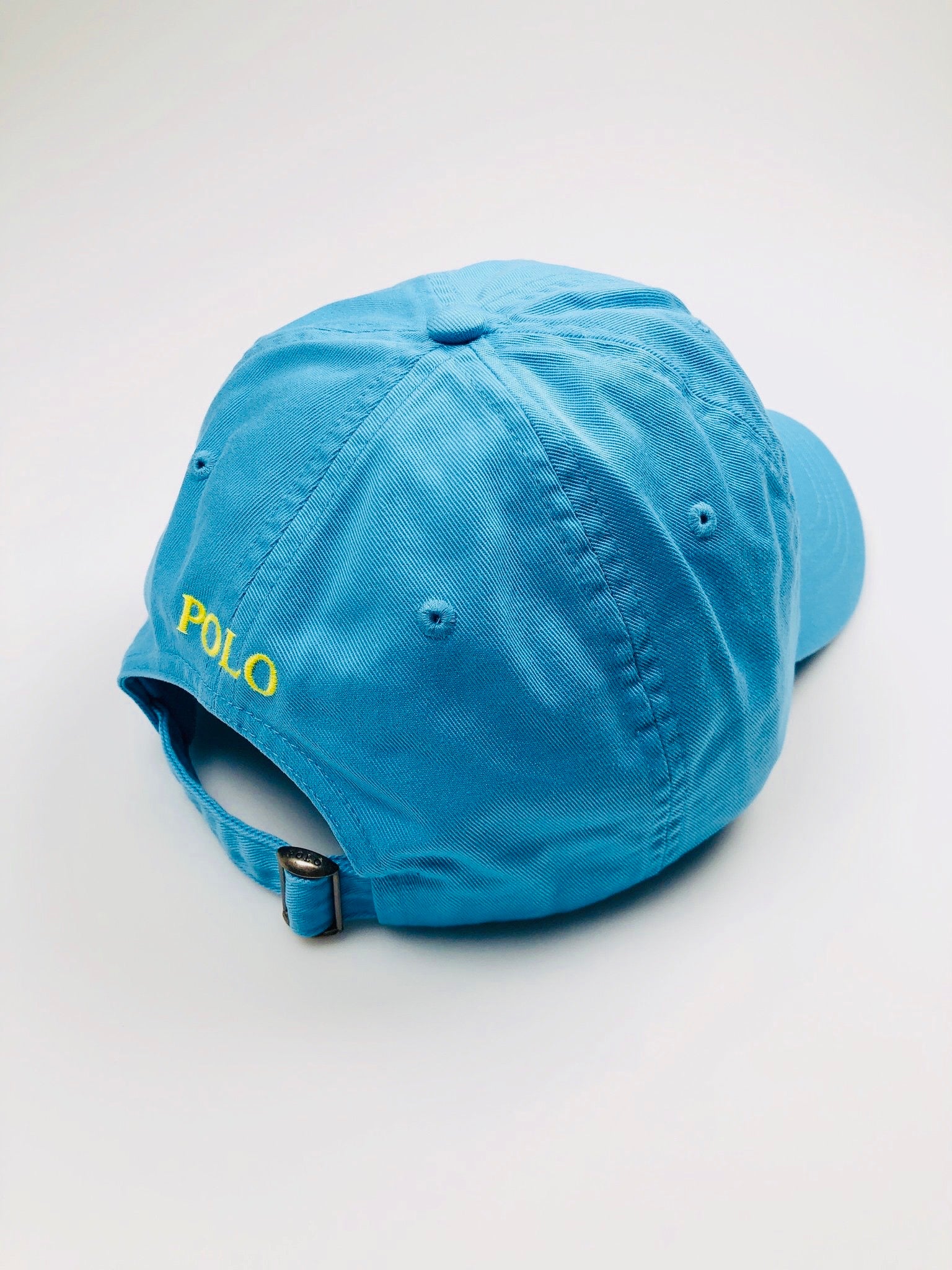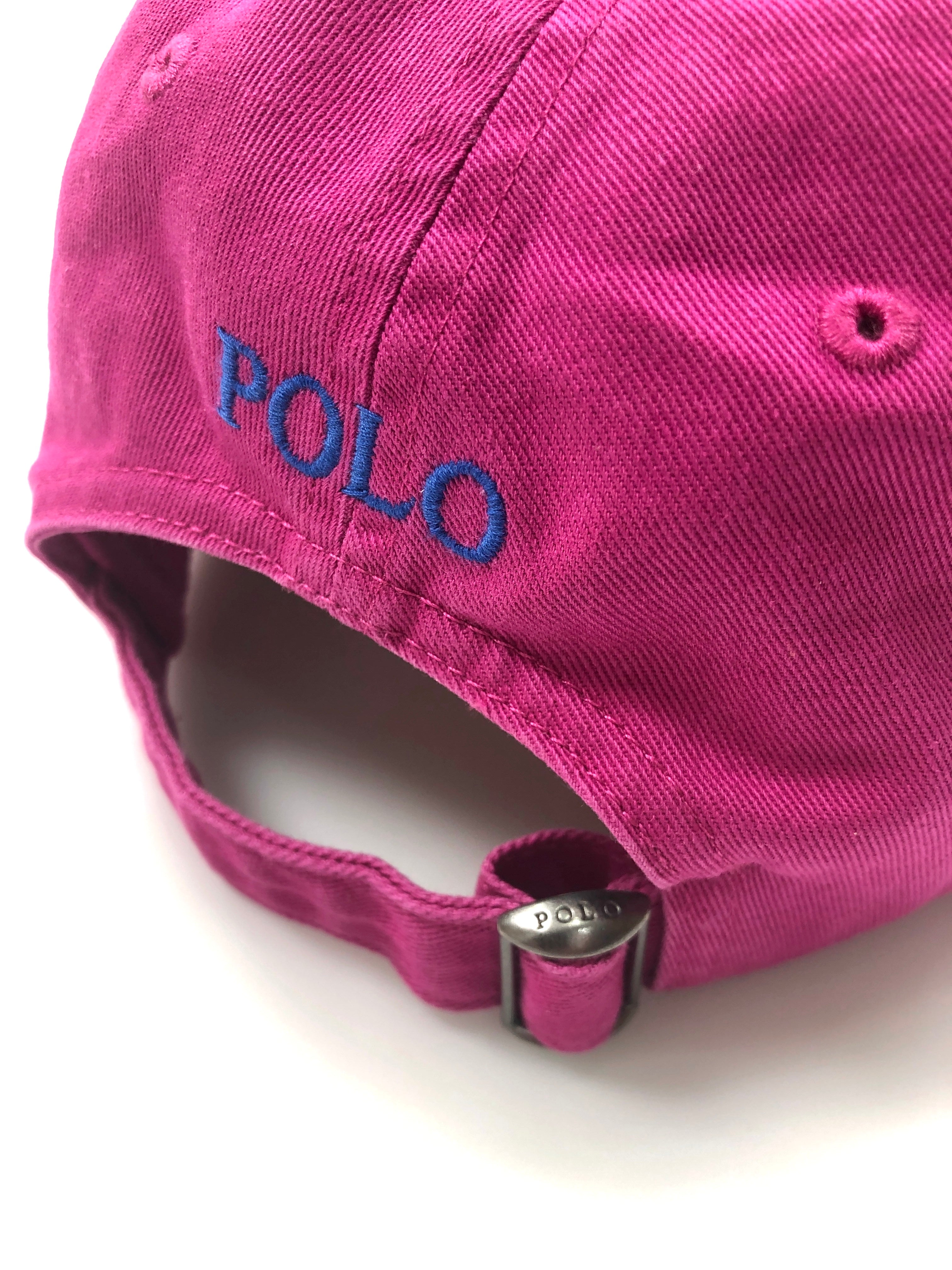- Signature embroidered Pony at the front. "Polo" embroidery and a buckled strap at the back.