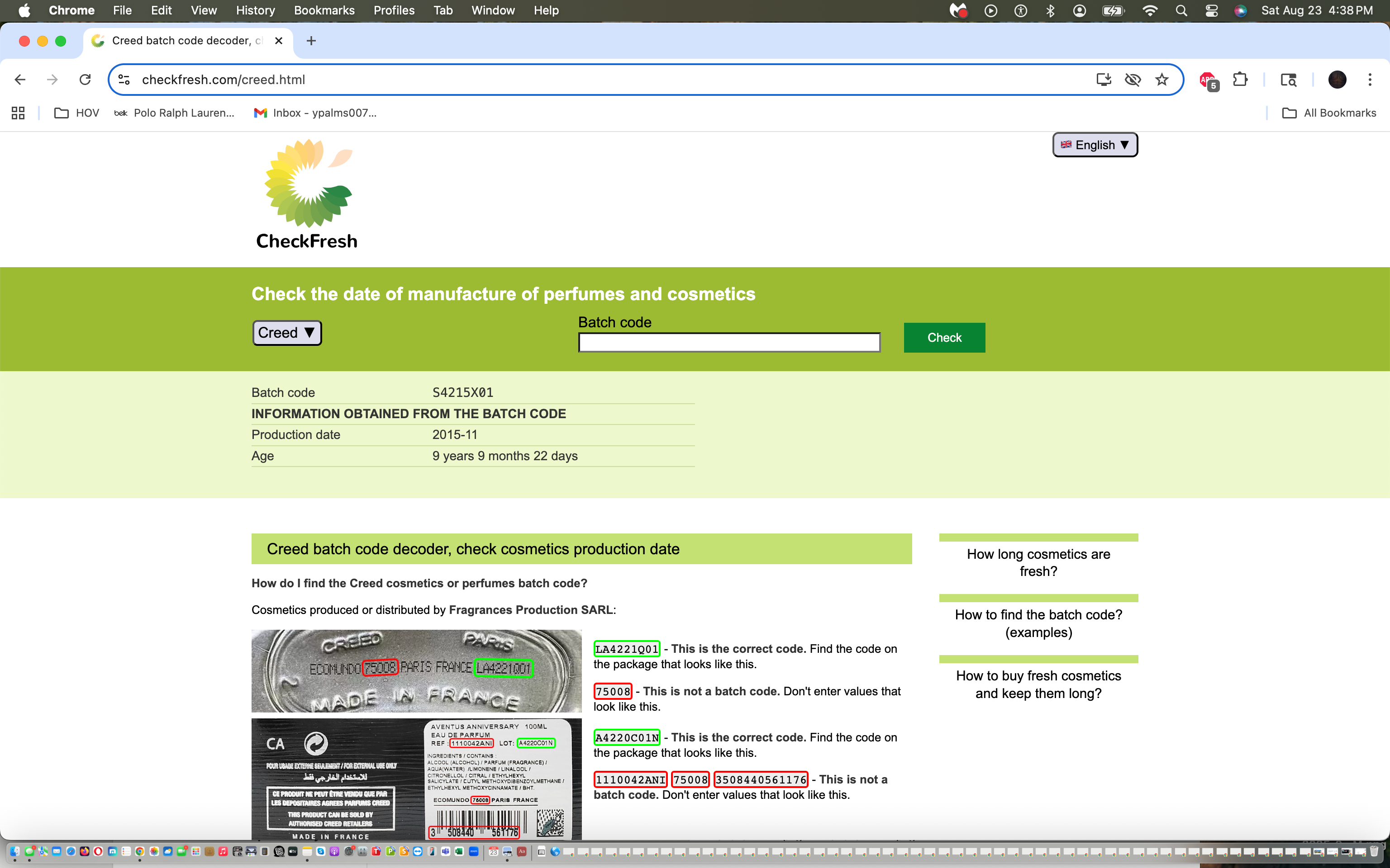Batch Code: S4215X01 Date Of Manufacturer (When Product Was Made): November 2015 Formulation