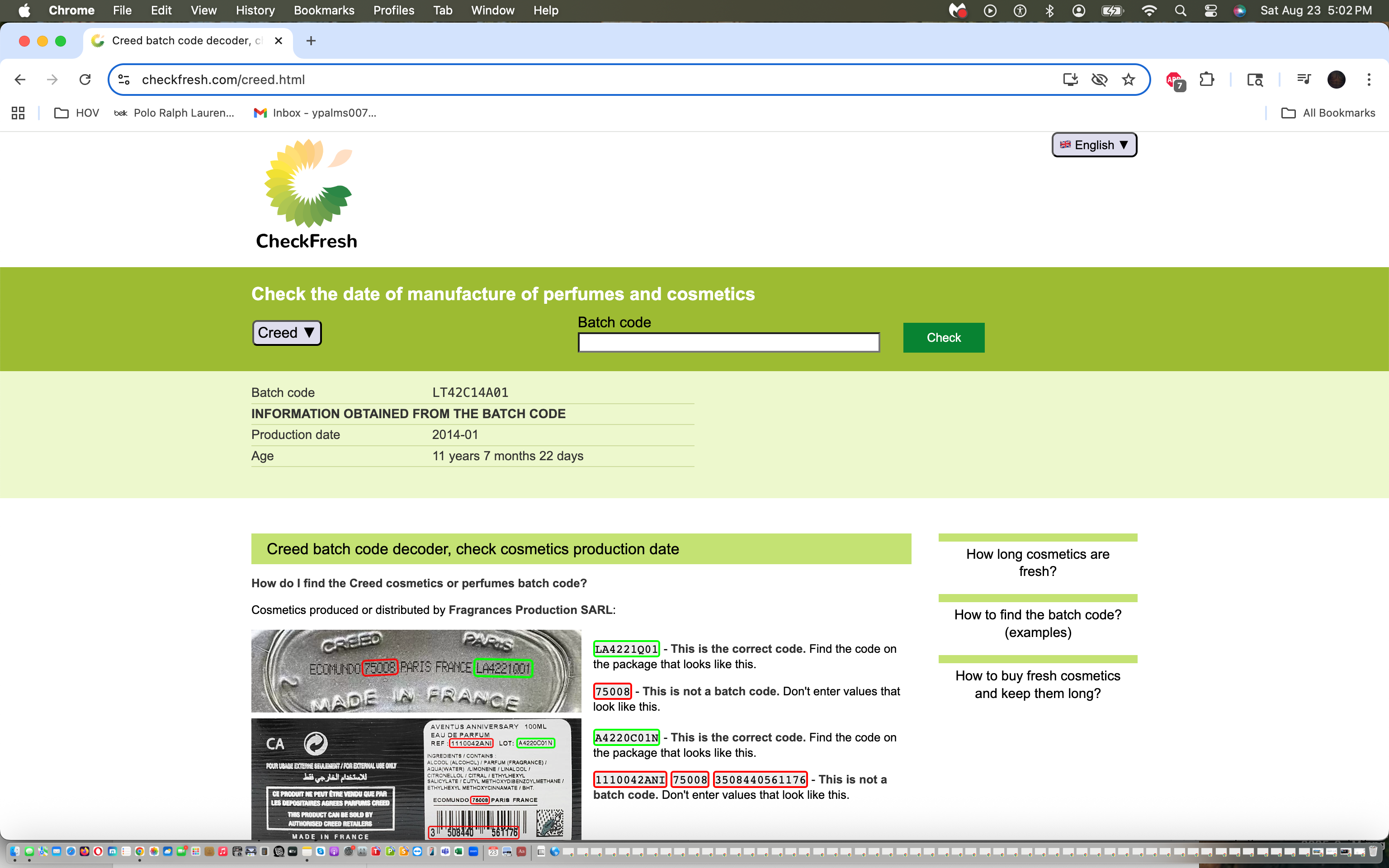 Batch Code: LT42C14A01 Date Of Manufacturer (When Product Was Made): January 2014 Formulation